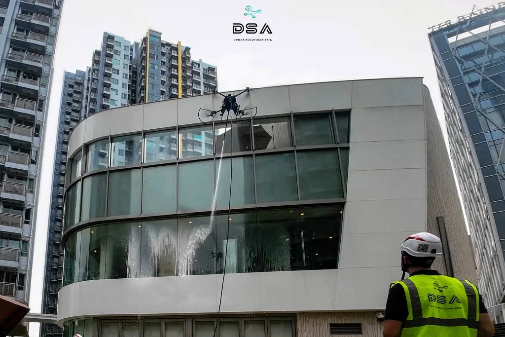 Drone Solutions Asia provides specialist drone operations for façade washing and hazardous area inspections. Our systems eliminate the need for scaffolding, rope access, and confined space entry while delivering faster, safer, and more cost-effective results.