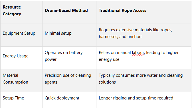 Using drones for maintenance drastically cuts down on material and energy consumption. Here's a comparison of the resources needed: